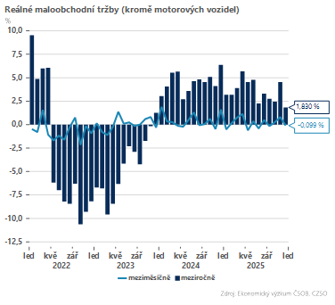 Slabší závěr roku je lehkým zklamáním, pravděpodobně však jde jen o korekci velmi silného listopadu, podpořeného akcí Black Friday. Za celý rok 2025 vzrostly maloobchodní tržby o 3,5 % a k solidnímu růstu mají našlápnuto i letos.