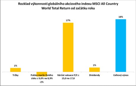 Globální akciové trhy zažívají od začátku letošního roku velice vydařené období.Index MSCI All Country World Total Return totiž připisuje zhodnocení 18 %. Podívejme se proto na detailní kontribuční analýzu, která zhodnotí, jak jednotlivé klíčové fundamentální faktory přispěly k celkovému výnosu.