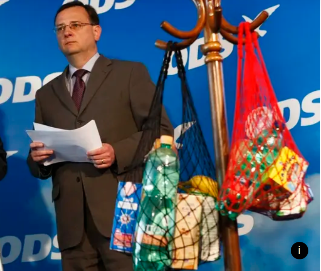 Na obrázku jsou vidět dvě tašky, které ukazoval Petr Nečas v roce 2010. Ta větší měla obsahovat nákup, pokud volby vyhraje ODS, a ta menší obsahovala nákup, pokud volby vyhraje ČSSD. V každé nákupní tašce měl být nákup za 100 Kč. Položím vám vážení čtenáři otázku. Kolik věcí bude obsahovat síťovka v roce 2025, když utratíme v obchodě 100,- Kč?