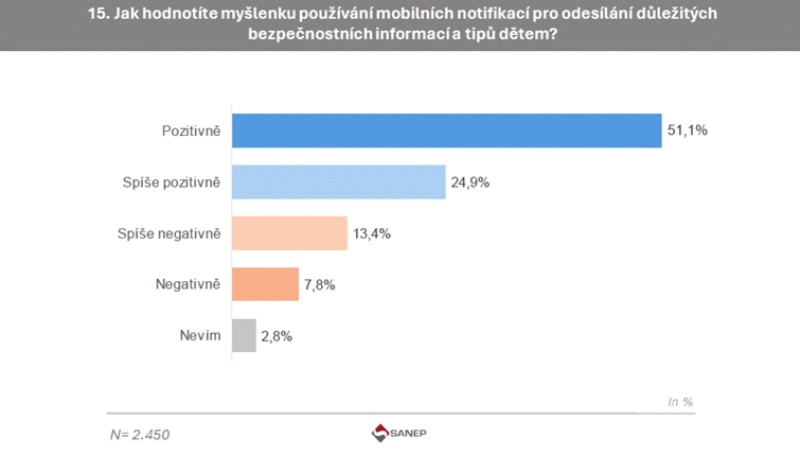 Tři čtvrtiny občanů si přejí, aby děti dostávaly operativní upozornění na blížící se nebezpečí, případně doporučení k tomu, jak se mají zachovat, formou notifikací přímo do jejich mobilu.